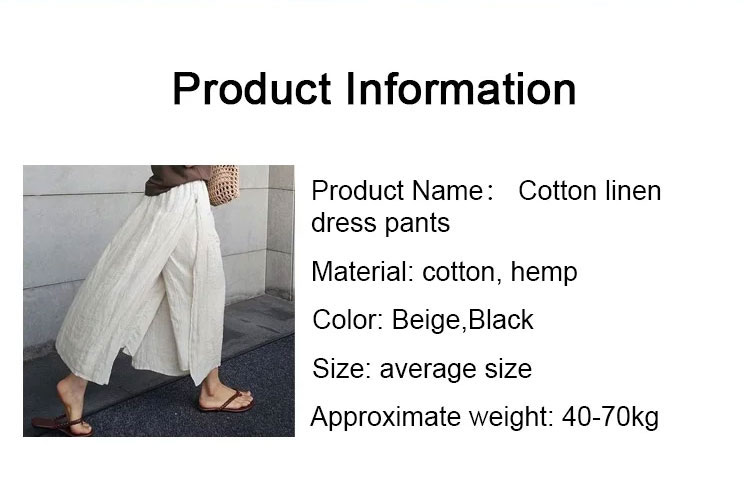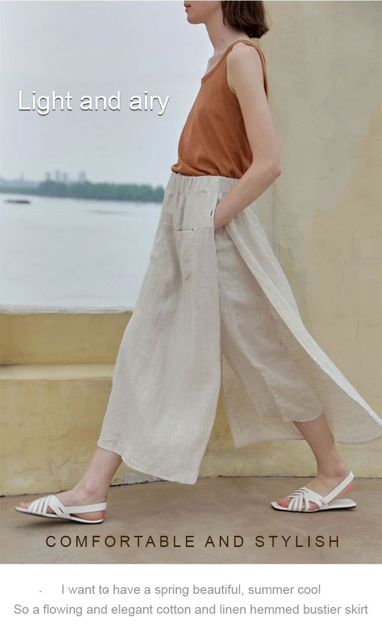 Two-piece loose cotton linen pants skirt